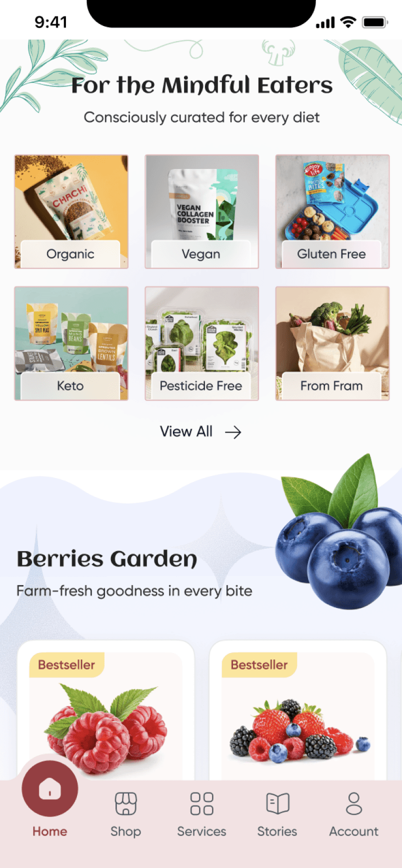 Designed the homepage for a grocery delivery app as part of a proposal.