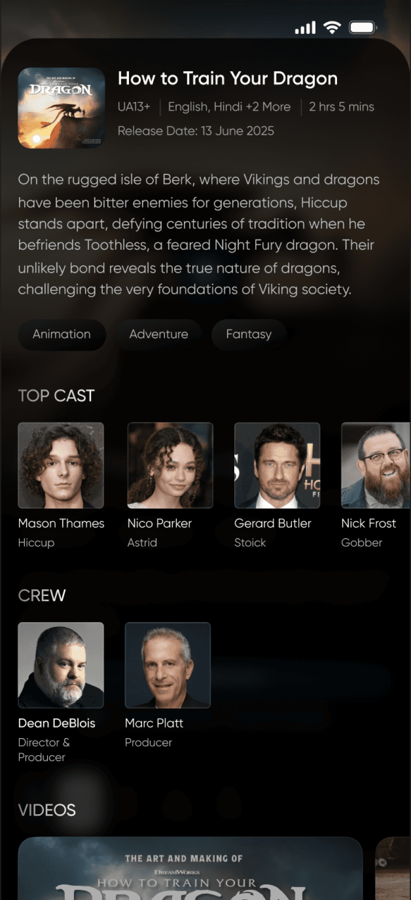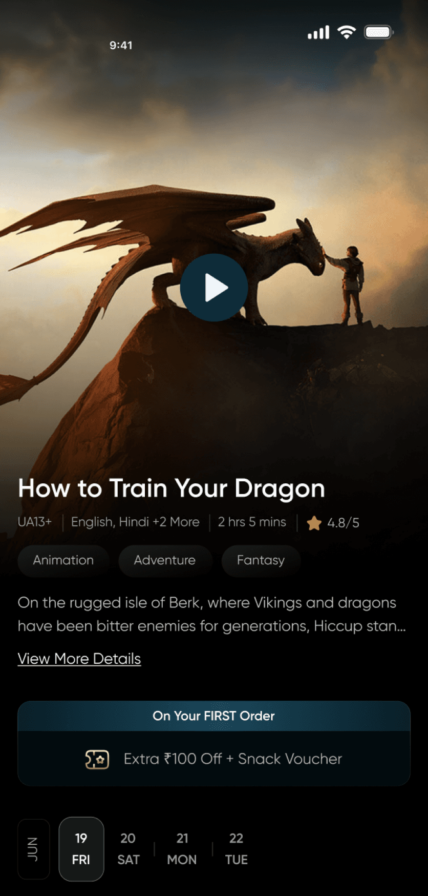 Designed the movie detail page of NY Cinemas by Ajay Devgn for proposal.