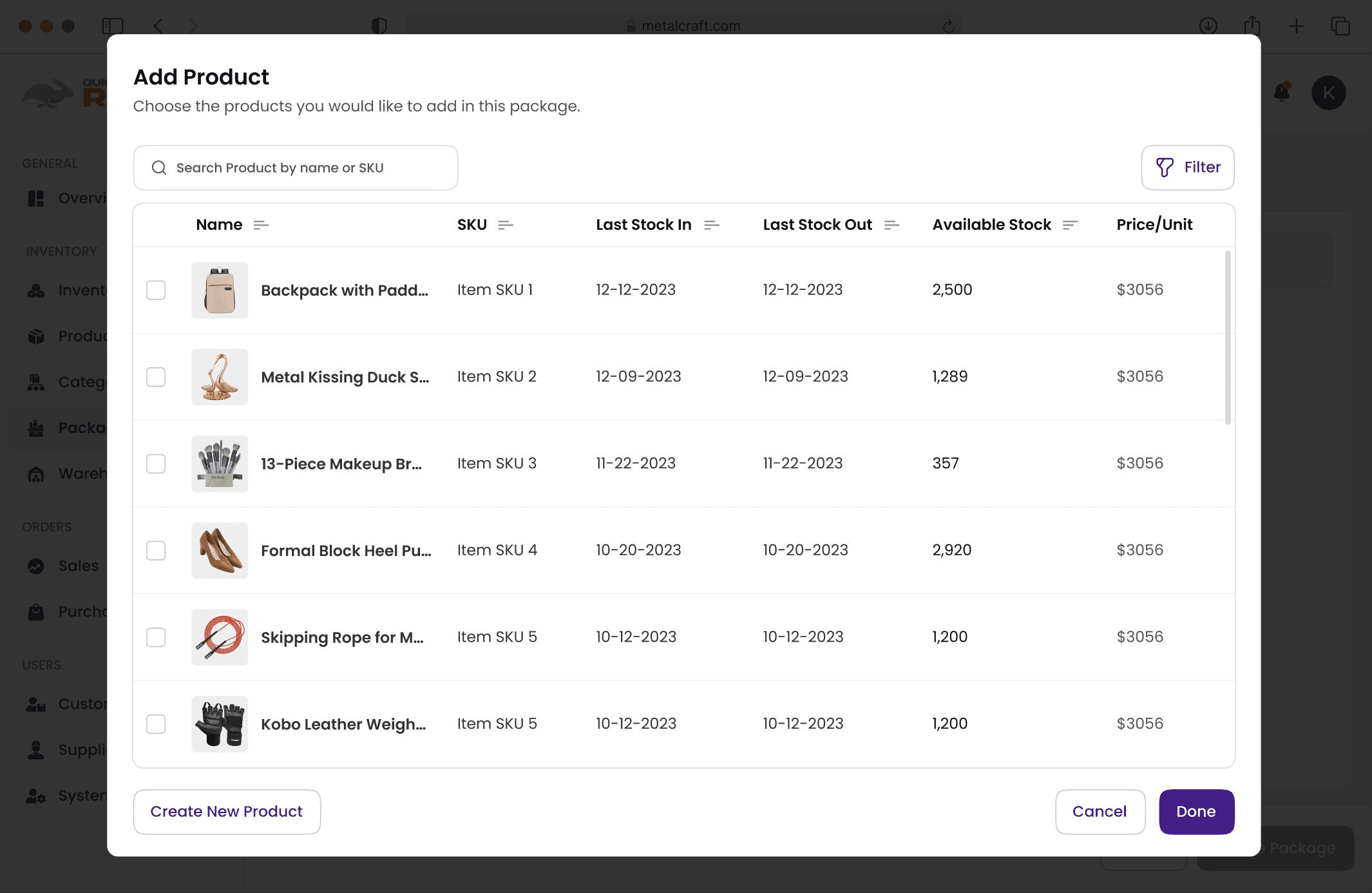 When admins create a package, they’ll likely deal with hundreds (if not thousands) of products. Scrolling endlessly through a massive list not only slows down the system but also overwhelms the user