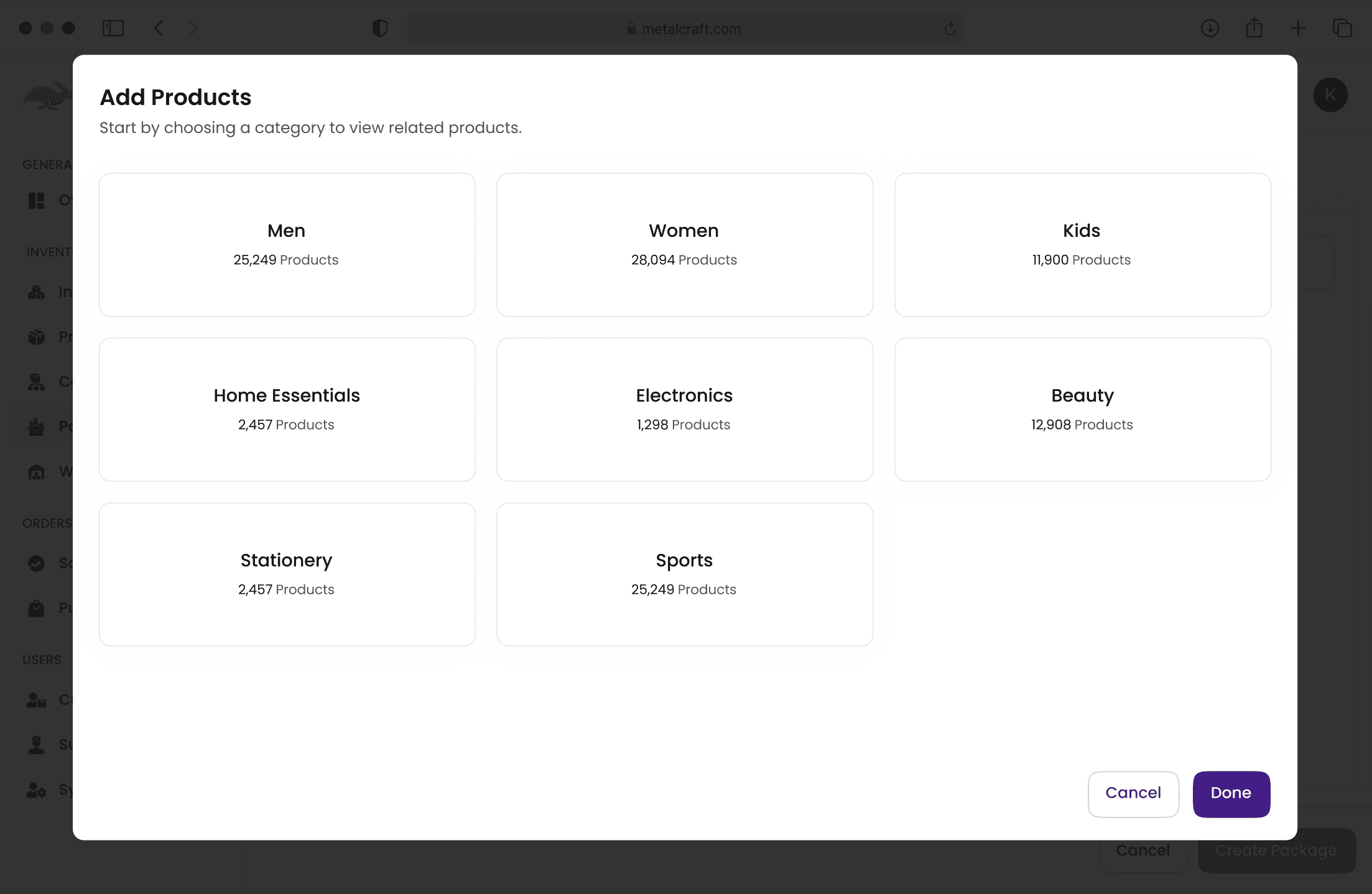 The client saw a growing need for businesses to sell bundled products (e.g., a men’s formal wear package with shirt, trousers, and shoes at a discount), but the tool lacked the ability to create and manage such bundles.