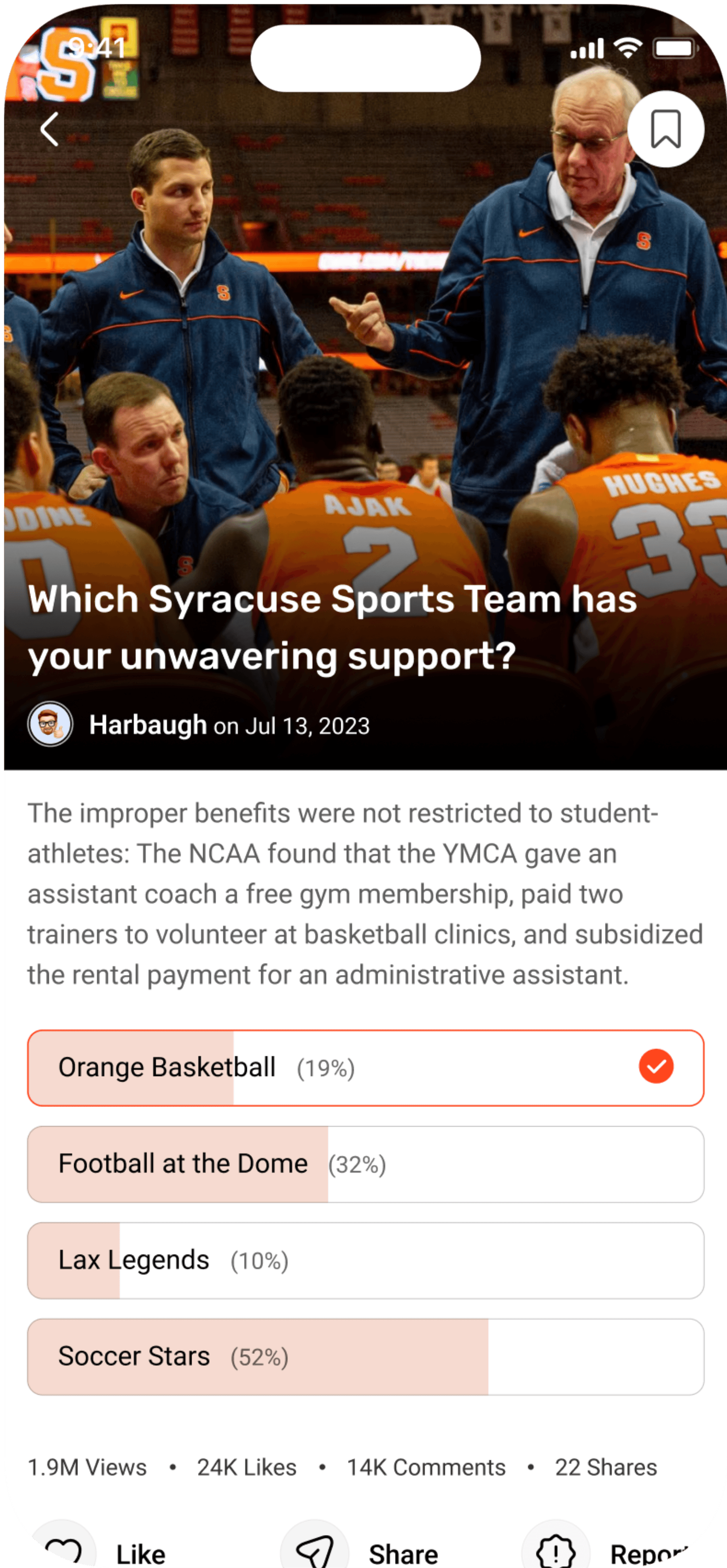 Orange United is a sports platform that brings fans the latest updates, scores, and news. While the platform saw high traffic, the engagement was mostly passive — users would browse and leave.